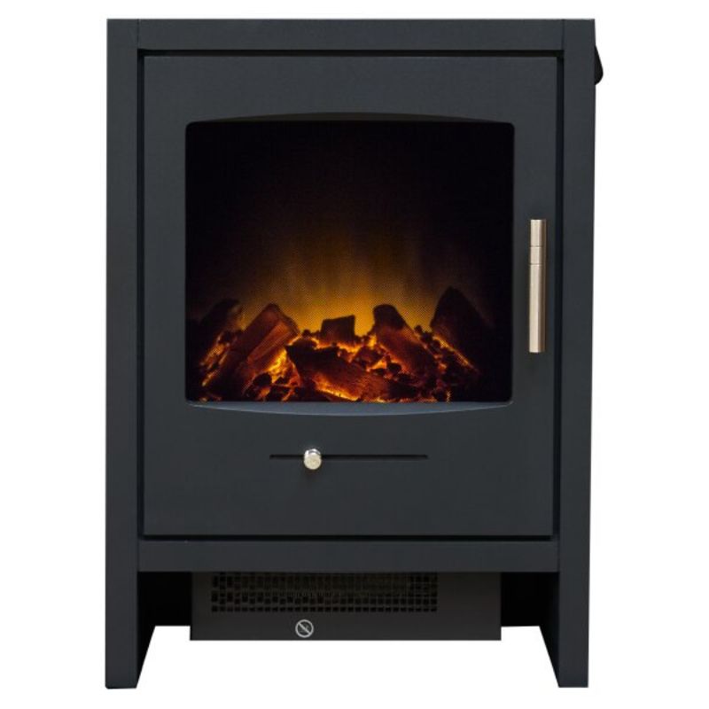 The Adam Bergen electric stove is a traditional stove with modern features. The Bergen features two heat settings of 0.9kW and 1.8kW which can be adjusted with the thermostat as well as a flame only setting which allows you to use the stove all year round. The flame effect is created by the long lasting LEDs which simmers behind the realistic log fuel bed.