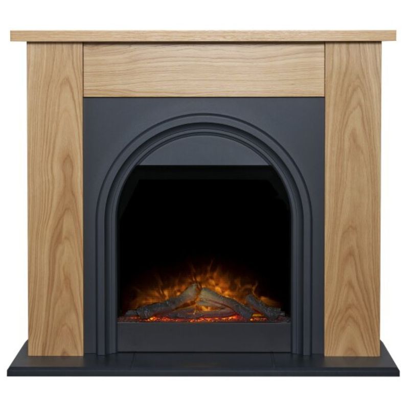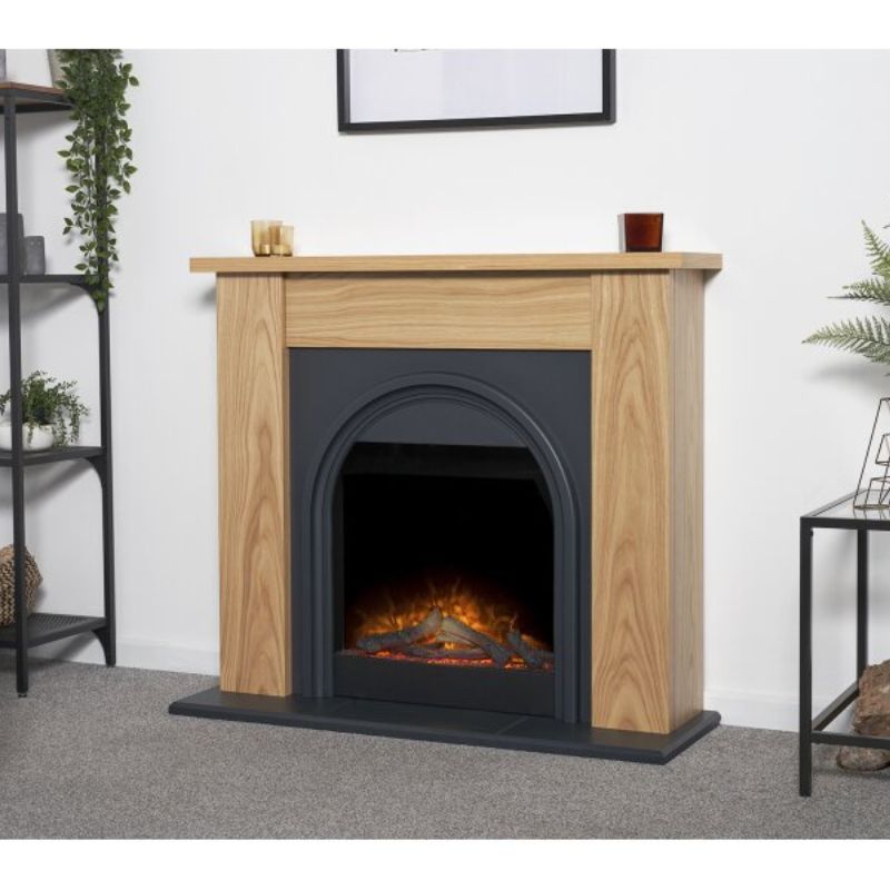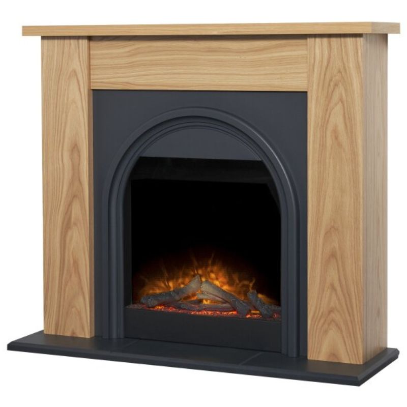Adam Burlington Electric Fireplace Suite in Oak & Charcoal Grey, 44 Inch