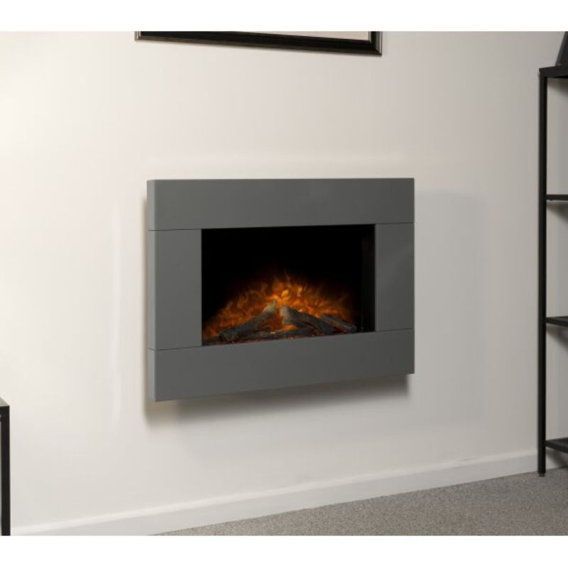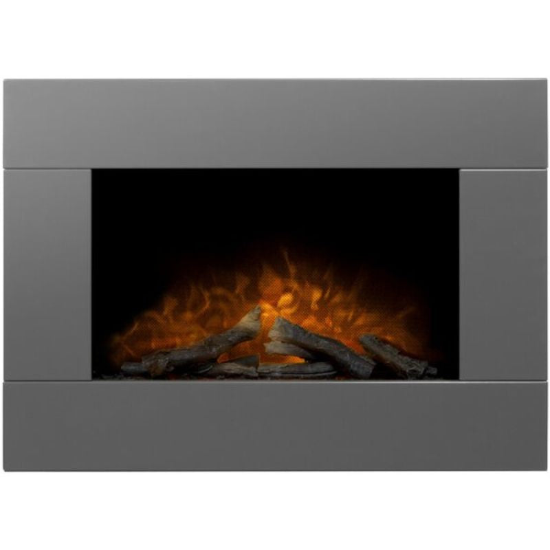 Adam Carina Electric Wall Mounted Fire with Logs & Remote Control in Satin Grey, 32 Inch