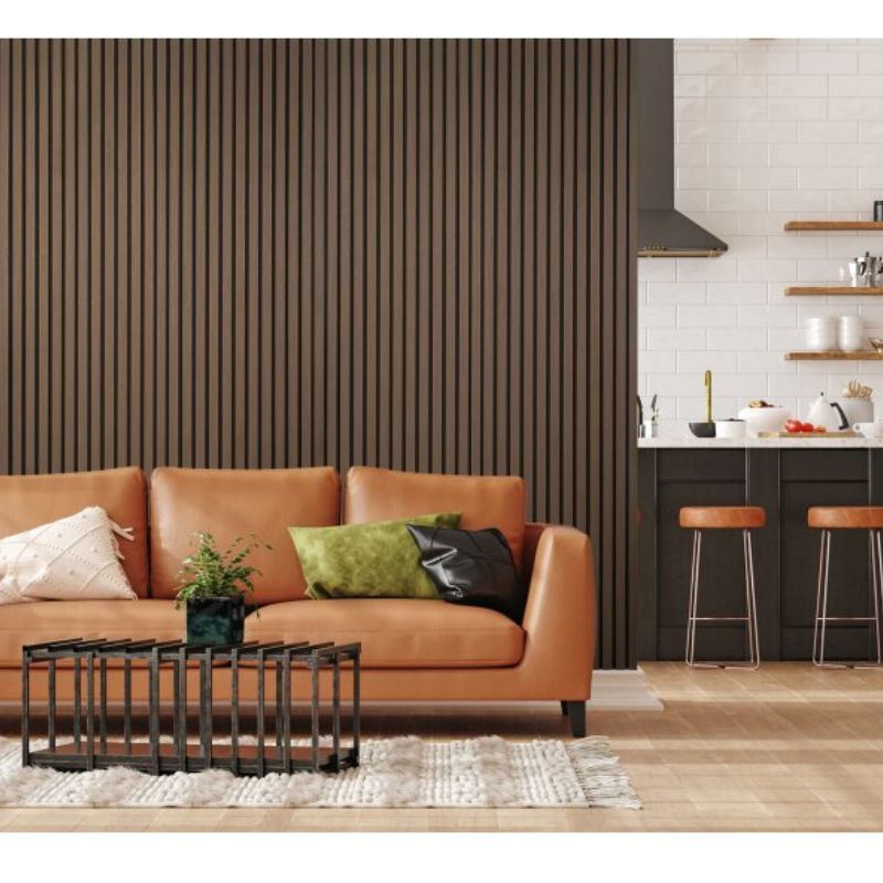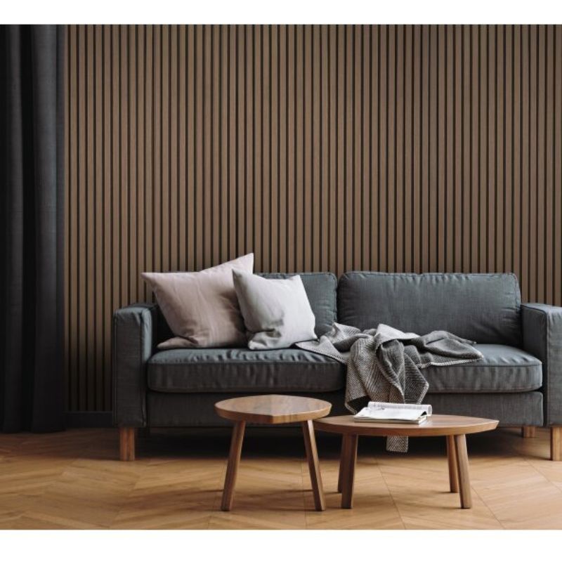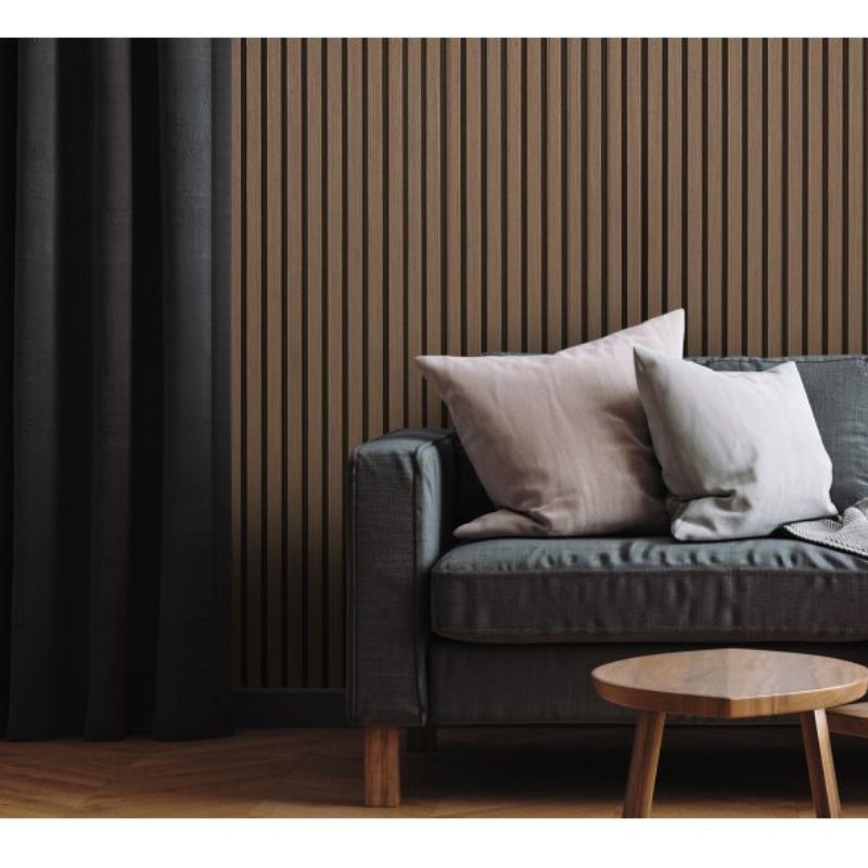 The highly innovative acoustic wall panel by Fuse is finished in a smoked oak real wood veneer, which provides a lightweight solution for anyone wanting the slatted look. The panel is easy to install and can quickly transform any indoor space with a contemporary redesign, from home offices to living rooms, bedrooms, or hallways.